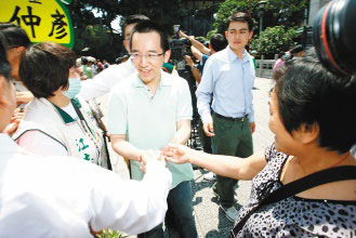 中新網(wǎng)6月7日電 綜合臺(tái)灣媒體報(bào)道,陳水扁之子陳致中7日北上臺(tái)北,陪同民進(jìn)黨臺(tái)北市議員參選人童仲彥在萬華艋舺一帶掃街拜票,雖然扁家最近匯回1億多新臺(tái)幣,但對于11日扁案二審宣判,阿扁能否交保,陳致中也無把握,連說了三次“希望父親早日回家團(tuán)圓”。此外,陳致中還于一早去龍山寺上香祈福。