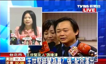 當(dāng)時(shí)王世堅(jiān)還公開(kāi)錄音帶,證明3個(gè)人的確是在旅館房間內(nèi)談公事。只是,事隔1年,這名當(dāng)時(shí)的證人張瑋津跳出來(lái)翻供,說(shuō)是基于同情心,怕王世堅(jiān)的太太受到傷害,才配合做假的錄音帶,還強(qiáng)調(diào),“我真的說(shuō)了謊!