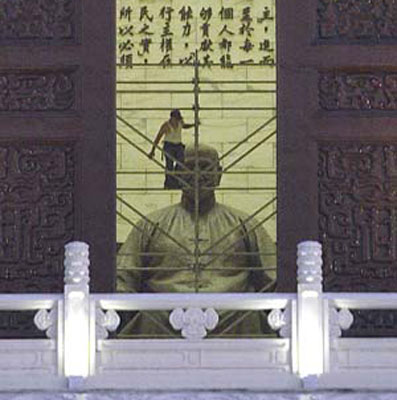 中正紀念堂元旦重新開館 蔣介石銅像被囚禁(圖)