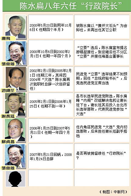 新聞資料:陳水扁八年歷經(jīng)六任“行政院長”