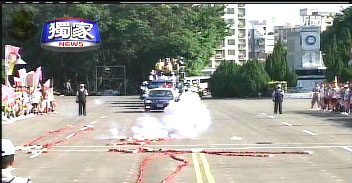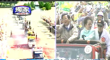 陳水扁和呂秀蓮的競選車隊(duì)經(jīng)過臺南市金華街,之所以布置這樣一個(gè)情境,為的就是嚴(yán)防“319槍擊事件”再度上演。