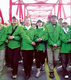 民進(jìn)黨方面則將展開擅長的大型活動,炒熱氣氛,先由謝蘇競選總部青年部發(fā)起的“逆風(fēng)前進(jìn)行腳活動”,“二二八”當(dāng)天走進(jìn)臺北市,讓選情沖上最高點(diǎn)。謝長廷與蘇貞昌可能參與“二二八”當(dāng)天逆風(fēng)行腳團(tuán)進(jìn)入臺北市的晚會。