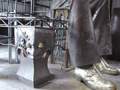 “這就是后現(xiàn)代的解構(gòu)表達(dá)手法!”郭少宗表示,這也象征結(jié)束政治強(qiáng)人時(shí)代,“虛位”給人民百姓。他說(shuō),之前拆卸碎片過(guò)于殘破,無(wú)法完全修補(bǔ),考慮藝術(shù)美感和實(shí)際現(xiàn)況,讓銅像結(jié)構(gòu)和銅梁座椅,做了適度的結(jié)合。