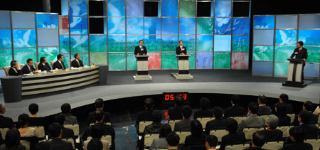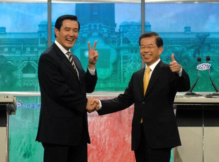 圖為馬英九與謝長廷第二場(chǎng)電視辯論會(huì)場(chǎng)情形。(圖:“中央社”)