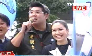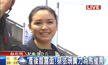產后首露面 連戰(zhàn)兒媳蔡依珊賣力為馬英九催票(圖)