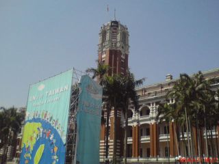"公投"遭否決 臺(tái)"總統(tǒng)府"拆"入聯(lián)"宣傳牌樓(圖)