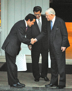 中新網(wǎng)3月28日電 暌違八年李登輝與馬英九再次相會(huì),馬英九、蕭萬(wàn)長(zhǎng)27日展開(kāi)請(qǐng)益之旅,首站拜會(huì)李登輝,雙方會(huì)談1小時(shí)40分鐘。馬英九會(huì)后表示,李登輝再三提醒未來(lái)執(zhí)政要做到清廉,期許他和蕭萬(wàn)長(zhǎng)全心全力為臺(tái)灣打拼。