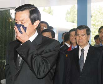 馬英九、蕭萬(wàn)長(zhǎng)5日到蔣經(jīng)國(guó)頭寮陵寢謁陵,馬英九感傷落淚。