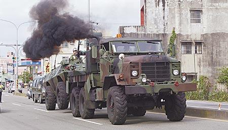 演習(xí)啟動后,臺軍憲兵所屬裝甲車立刻駛出營區(qū),這也是“玉山兵推”實(shí)行以來首度有裝甲車在白天開入市區(qū)。