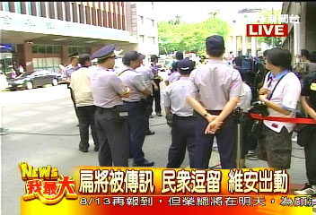 中新網(wǎng)8月12日電 臺(tái)灣“最高檢察署”特偵組針對(duì)機(jī)要費(fèi)案,今天下午將傳訊陳水扁。鑒于上次陳水扁出庭遭人踹,臺(tái)警方緊急規(guī)劃調(diào)度八十名警力在傳訊前完成部署維安勤務(wù)。
