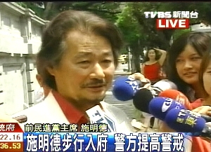 中新網(wǎng)9月9日電 前民進(jìn)黨主席施明德9日計(jì)劃與馬英九會(huì)面談反貪腐議題,在未獲回應(yīng)后,與倒扁總部骨干范可欽等人步行前往并進(jìn)入了馬英九辦公室;馬英九辦公室由秘書長(zhǎng)詹春柏出面接待。