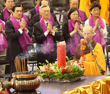 參加法會(huì),馬英九沒(méi)談?wù),記者沒(méi)機(jī)會(huì)問(wèn)他和蔡英文同臺(tái)尷不尷尬,不過(guò)答案恐怕也是阿彌陀佛。