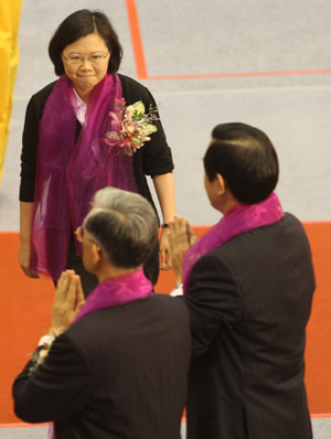 蔡英文雖說(shuō)不尷尬,但兩人在后臺(tái),只禮貌握手,沒(méi)有任何交談。