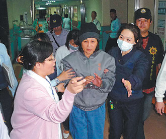 蘇治芬在檢方訊問結(jié)束后約一個(gè)半小時(shí),出現(xiàn)身體不適,所方隨即安排救護(hù)車,把她送往醫(yī)院。蘇治芬下車后,多次搖著被銬雙手,表明不愿躺上推床,堅(jiān)持走入病房。因身體虛弱,一路由醫(yī)護(hù)人員扶著。