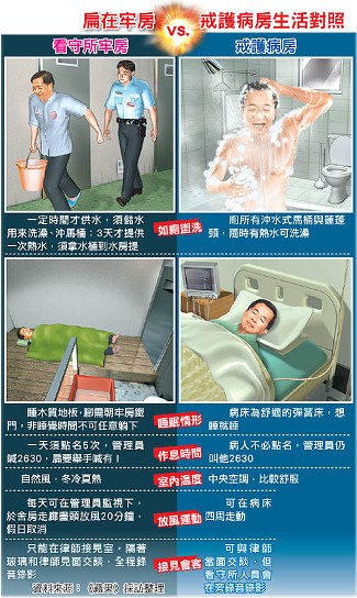陳水扁在看守所與戒護(hù)病房生活對比(來源:臺灣《蘋果日報(bào)》)