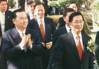 葉盛茂(左)一路獲陳水扁拔擢,圖為六年前葉盛茂陪同陳水扁(右)出席“調查局”調查班結業(yè)典禮情形。圖片來源:臺灣《聯(lián)合報》