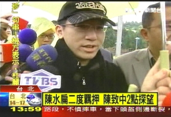 中新網(wǎng)12月30日電 據(jù)臺(tái)灣TVBS報(bào)道,陳水扁第二度遭到羈押,由于沒(méi)有禁見(jiàn),他的兒子陳致中在今天下午兩點(diǎn)到臺(tái)北看守所探視。