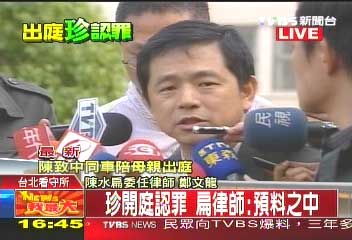 中新網(wǎng)2月10日電 據(jù)臺灣TVBS報道,陳水扁夫人吳淑珍今天(10日)出庭應訊,當庭承認偽造文書和洗錢罪,對此,陳水扁委任律師鄭文龍表示,早在預料之中。