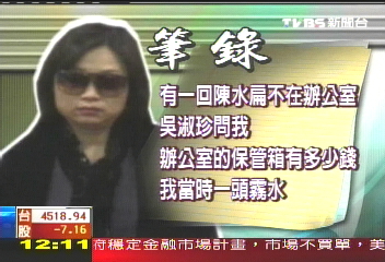 陳水扁任內(nèi)出納陳鎮(zhèn)慧向臺(tái)灣特偵組供出,陳水扁在“總統(tǒng)府”內(nèi)的辦公室有一個(gè)小型金庫,專門用來存放他向企業(yè)募來的“私房錢”。圖片來源:臺(tái)灣TVBS