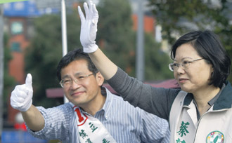 民進(jìn)黨主席蔡英文與黨籍市議員則陪同周柏雅街頭拜票,她說,藍(lán)綠差距正快速縮小,她對周柏雅的選情樂觀。