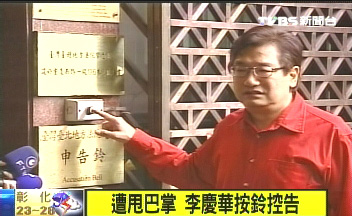 中新網(wǎng)4月22日電 據(jù)臺灣TVBS報道,國民黨“立委”李慶華今日在“立法院”里被民進(jìn)黨“立委”邱議瑩甩了一巴掌,李慶華下午2點(diǎn)多到法院按鈴控告邱議瑩公然侮辱。
