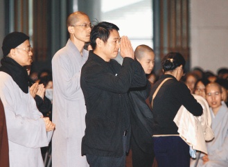 中新網(wǎng)2月6日電 著名影星李連杰今天參加圣嚴(yán)法師入斂?jī)x式。他說(shuō),人總是放不下,說(shuō)放下又拿起,名利帶不走,但人總要走,信眾不舍是能理解,他還以弟子身份向信眾說(shuō)感謝,也盼大家要珍惜。