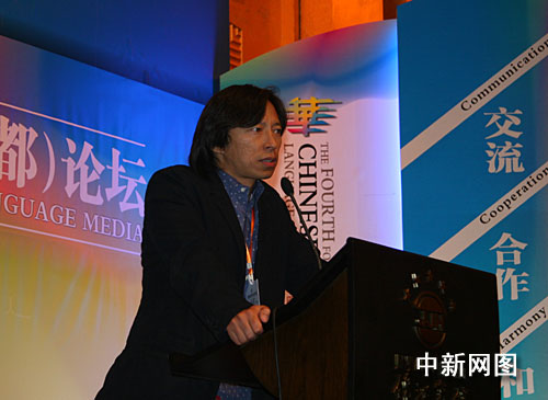 最后一點,就是海外華文媒體怎么樣跟中新社共同一塊做一些事情。我上午就說過了,中新社牽頭,我們可以建立一個網(wǎng)絡(luò)平臺,也許一個星期就可以做出來,鏈接式的,把世界華文媒體,用點擊的方式,比如西班牙,一點擊,當?shù)氐膱蠹埦涂梢猿尸F(xiàn)出來,這給中國人華文媒體在海外交流信息是一個很好的平臺,同時中新社也可以形成一個把大家結(jié)合起來的團隊,共同去做這件事情,同時還有一些商業(yè)的合作機會,包括土地、房屋買賣和旅游。假設(shè)我去歐洲旅游的時候,我只要是有這么一個平臺,我一點擊就可以從那邊拿到東西。再一個,大家在海外去做華文媒體的時候,做LOGO新聞的時候,通常會東抄西抄,但是互相抄的時候就有重復了,我隨便看一下,假設(shè)是德國的報紙我看得津津有味,我在美國呆著,從來不知道德國的報紙是什么樣。我基本上是這么幾點,和大家分享一下中國的問題和可以操作的解決方式。謝謝。