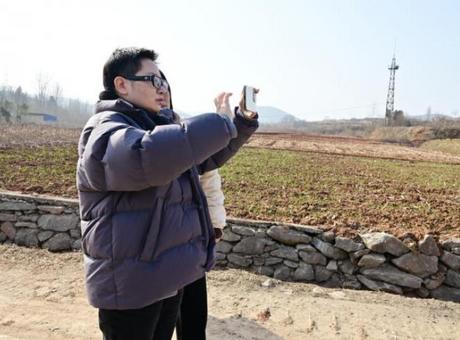 在浙江省溫州市泰順縣三魁鎮(zhèn)的高山上,陽光灑滿連片的農(nóng)田。幾位村民正與一位戴著眼鏡、衣著樸素的中年人交談,笑聲隨山風(fēng)飄過田埂。