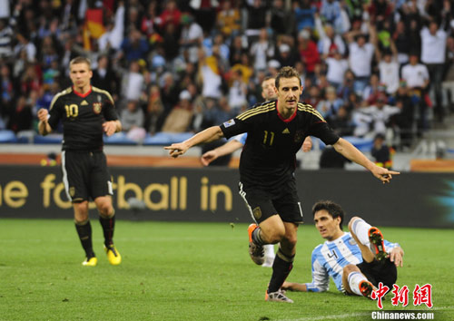 法新社報道的標(biāo)題為,“德國擊潰阿根廷殺入世界杯半決賽”。報道稱,克洛澤用兩個進(jìn)球慶祝他的第100場國家隊進(jìn)球,他幫助德國4比0狂勝阿根廷。