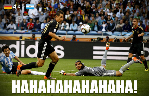 北京時(shí)間7月3日,阿根廷0比4不敵德國,對于這個(gè)結(jié)果最高興的要數(shù)巴西人了,一天前還受到阿根廷人冷嘲熱諷的巴西人笑了,《環(huán)球報(bào)》網(wǎng)站配發(fā)了一張德國球迷開懷大笑的照片,圖注很簡單——“Hahahahahahahahaha”。