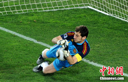 歐洲冠軍西班牙1比0戰(zhàn)勝巴拉圭,斗牛士將在半決賽中對陣德國,這也是歐洲杯決賽重演。比賽中,卡西利亞斯撲出點球成了西班牙的英雄。