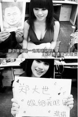 雖然朝鮮隊早已經(jīng)從南非世界杯打道回府,但朝鮮隊極具個性的球星卻贏得中國粉絲的狂熱追捧。近日網(wǎng)絡上瘋傳一條中國美女向鄭大世求婚的視頻,琪琪在視頻中表態(tài),要為鄭大世生一支足球隊。