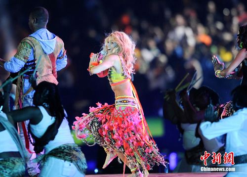 中新網(wǎng)7月12日電 北京時(shí)間12日凌晨,世界杯閉幕表演在南非約翰內(nèi)斯堡的足球城體育場舉行。出生于哥倫比亞的拉丁天后夏奇拉在閉幕式上唱響了本屆世界杯的主題歌《Waka Waka (This Time for Africa)》(《非洲時(shí)刻》),點(diǎn)燃了現(xiàn)場的激情。