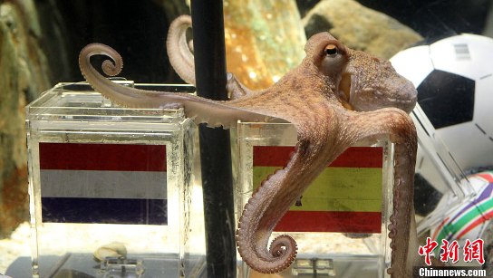中新網(wǎng)7月12日電 南非世界杯?冠軍西班牙隊?不,這屆世界杯也許應該改成“章魚”世界杯,而冠軍和頭號明星不是西班牙隊的冠軍隊員,也不是奪取金球獎的烏拉圭人弗蘭,更不是烏鴉嘴貝利或阿根廷隊主帥馬拉多納,而是德國的章魚保羅!