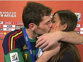 卡西女友卡波內(nèi)羅西班牙電視五臺的當紅記者前往決賽進行采訪,比賽結(jié)束后,她采訪了西班牙國家隊隊長卡西利亞斯,也就是她的男友。