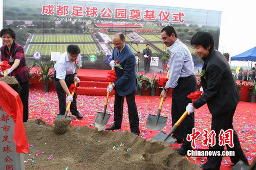中新網(wǎng)成都7月21日電(記者 楊杰) 21日下午,預(yù)計(jì)投資3000萬(wàn)元人民幣的成都足球公園正式奠基。亞足聯(lián)主席哈曼專程蒞臨現(xiàn)場(chǎng),參加了奠基儀式。