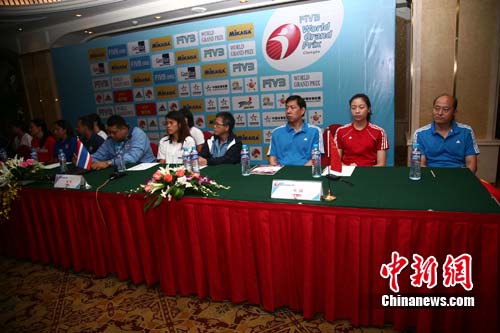 中新網(wǎng)成都8月5日電(楊杰 張浪)2010世界女排大獎賽成都賽區(qū)將于6日下午在荷蘭與泰國的較量中拉開帷幕。5日下午,抵蓉參賽的波多黎各、泰國、荷蘭和中國隊的主教練接受了媒體記者采訪,均表示要積累經(jīng)驗,全力一戰(zhàn)。
