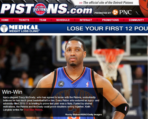 中新網8月11日電 昨日據雅虎體育報道,特雷西-麥克格雷迪正式以老將底薪合同與底特律活塞簽約1年。