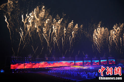 當(dāng)晚的開幕式文藝演出在新落成的那達(dá)慕大會(huì)會(huì)場(chǎng)舉行,由《夢(mèng)回草原》、《夢(mèng)醒草原》、《夢(mèng)圓草原》和《鄂爾多斯乘著夢(mèng)的翅膀》等四個(gè)篇章組成,包括騰格爾、德德瑪、鳳凰傳奇等蒙古族藝術(shù)家以及維塔斯、wonder girls組合等國際明星的助陣,讓夜色中的鄂爾多斯綻放出耀眼的光芒。
