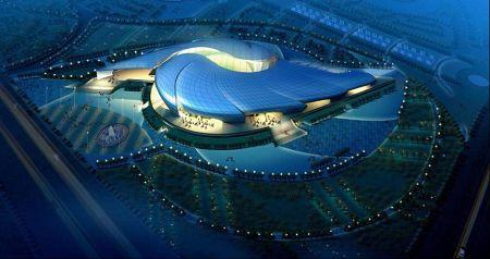 南沙體育館是亞運(yùn)會武術(shù)比賽場館,因此在設(shè)計(jì)上場館也體現(xiàn)了中國武術(shù)的意境。南沙體育館的外殼分九個曲面單元,單元間片片層疊,并分為南北兩組以比賽大廳圓心為中心呈螺旋放射狀展開。這種富有動感的設(shè)計(jì)隱喻了中國武術(shù)的最高境界——“陰陽俱合,天人合一”。同時結(jié)合廣東海洋文化的特征,借鑒了富有肌理變化的“海螺”外殼作為造型設(shè)計(jì)的意向。南沙體育館主體鋼結(jié)構(gòu)部分采用了雙層環(huán)形張弦穹頂結(jié)構(gòu),主跨度達(dá)到了98米。