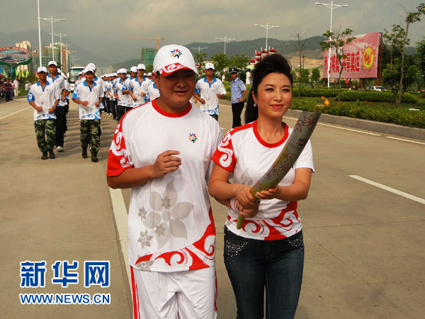 9月12日上午,以“關(guān)注特奧,情燃海西;和諧之光,普照八閩”為主題的第五屆全國(guó)特奧會(huì)火炬?zhèn)鬟f活動(dòng)最后一站在福建寧德隆重舉行。日前剛剛被聘任為本屆特奧會(huì)愛心大使的著名歌唱家劉媛媛?lián)?1名火炬手之一,攜智障兒童雷孝文共同進(jìn)行了第二棒的傳遞。盡管每一棒接力只有60米的距離,但劉媛媛仍然難掩興奮之情:“真的非常高興,‘愛心大使’和‘火炬手’的雙重身份令我倍感榮幸和責(zé)任。通過火炬?zhèn)鬟f這個(gè)儀式,希望更多的人能夠參與到關(guān)注、關(guān)心、關(guān)愛智障孩子的事業(yè)當(dāng)中來!笔栈饍x式后,劉媛媛與幾名青年志愿者共同放飛了象征著希望與美好的和平鴿。儀式現(xiàn)場(chǎng),劉媛媛還攜數(shù)名智障運(yùn)動(dòng)員演唱了《感恩》、《美好祝福》兩首歌曲。
