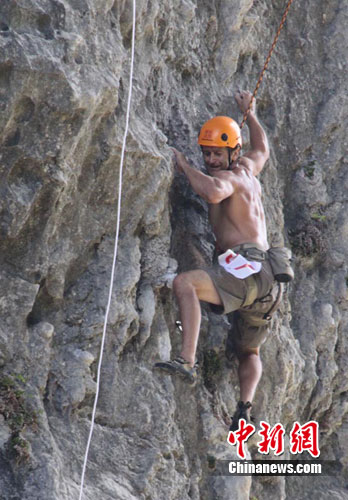 中新網(wǎng)河池9月18日電(陸旺)9月18日,廣西羅城國際攀巖賽在中國唯一的仫佬自治縣——廣西河池市羅城仫佬族自治縣的月亮山開賽。被視為2010羅城攀巖旅游節(jié)的重頭戲,中外80名攀巖愛好者以及部分觀眾上午8點(diǎn)鐘便聚集在形狀宛若一輪明月的月亮山下,相互“攀比”、切磋攀巖技術(shù)。