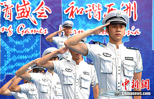 中新網(wǎng)廣州9月25日電 (程景偉)25日,由廣東省公安廳主辦的“警民心連心·平安迎亞運(yùn)”大型主題活動(dòng)在廣州市體育中心舉行。廣東省政法委書(shū)記、公安廳廳長(zhǎng)梁偉發(fā)在開(kāi)幕式致辭中表示,活動(dòng)目的在于展示警方誓!捌桨瞾嗊\(yùn)”的決心和信心。