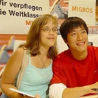 劉翔與外國(guó)女翔迷:2005年8月17日,中國(guó)的奧運(yùn)冠軍劉翔和美國(guó)的百米飛人格林一起,來到蘇黎世一家名為MIGROSCITY的商場(chǎng)為市民現(xiàn)場(chǎng)簽名。在前面期間,一位劉翔重視的粉絲們有幸坐在身邊,將這最幸福的一刻定格下來。