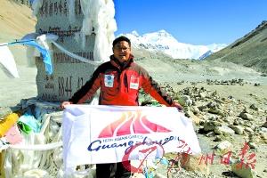從廣州到溫哥華再到珠穆朗瑪峰,8個月的時間,上萬公里的路程,這幅肩負(fù)著廣州亞運(yùn)會宣傳任務(wù)的旗幟終于飄揚(yáng)在珠峰上。