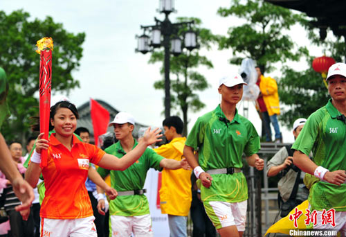 22日的亞運(yùn)火炬?zhèn)鬟f讓現(xiàn)代文明和古代文化在這里激情交匯。上午9時(shí),火炬?zhèn)鬟f點(diǎn)火儀式在明代閩贛交通要沖廣濟(jì)門(mén)城樓前舉行,在具有濃郁潮州特色的潮州醒獅表演后,第一棒火炬手張宛瓊從潮州市委書(shū)記駱文智手中接過(guò)火炬。