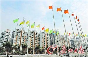 廣州亞運城運動員村的升旗廣場上彩旗飄飄,3天后,廣州亞運城運動員村將正式開村