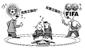 如果此時推出2010年的中國足球十大雷人之舉排行榜,中超最后兩輪聯(lián)賽中場休息30分鐘的新規(guī)無疑將毫無懸念提前入選。除了新規(guī)“世界首創(chuàng)”的原創(chuàng)性外,中國足協(xié)和國際足聯(lián)關(guān)于“加息”是否違規(guī)的口水仗也是可圈可點!凹酉ⅰ钡降走`不違規(guī)?俱樂部能像《秋菊打官司》中的秋菊一樣維權(quán)嗎?國際足聯(lián)裁委會給出了“Yes”的答案,而足協(xié)則依然固我!霸蹅儧]有違規(guī),作為中超主辦協(xié)會,我們對比賽規(guī)則有自主權(quán)!弊蛱旖邮苡浾卟稍L時,中國足協(xié)職業(yè)發(fā)展部主任劉殿秋如是說。