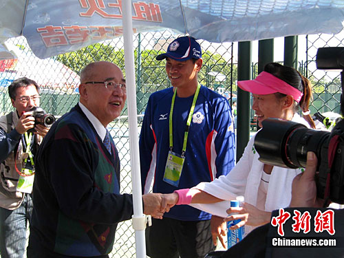 中新網(wǎng)廣州11月13日電 (記者 郭軍)13日上午,廣州亞運會網(wǎng)球女子團體賽第一輪中華臺北隊對越南隊的比賽在奧體網(wǎng)球中心四號場舉行。中國國民黨榮譽主席吳伯雄來到賽場外為寶島選手加油鼓勁。