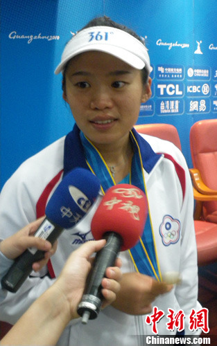 中新網(wǎng)廣州11月22日電(記者 張羽)在22日舉行的廣州亞運(yùn)會(huì)網(wǎng)球女子雙打決賽上,中華臺(tái)北組合詹詠然、莊佳容2比0擊敗隊(duì)友張凱貞、謝淑薇,獲得冠軍,為中華臺(tái)北代表團(tuán)再添一枚金牌。莊佳容在賽后的新聞發(fā)布會(huì)上表示,能夠在亞運(yùn)賽場(chǎng)上奪金真的很開(kāi)心,大陸是“福地”。